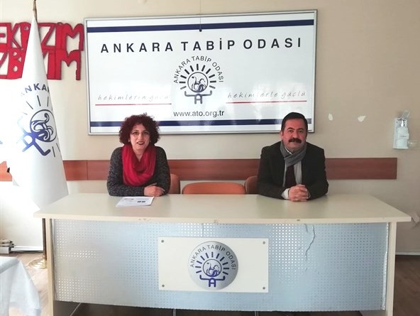 TTB’ye yönelik baskı sürecine karşı Ankara Tabip Odasında “Geleceğimize, halkın sağlık hakkına ve meslek örgütümüze sahip çıkıyoruz” başlıklı basın toplantısı düzenledi. Basın açıklamasını okuyan ATO Genel Sekreteri Dr. Mine Coşkun geçmişten bugüne TTB’nin çoğu kez iktidarların hedefinde olduğunu söyleyerek “Covid-19 salgınında olduğu gibi bilimsel bilgiyi her zaman, şeffaf bir şekilde toplumla paylaşmamız, hekimlerin yaşadığı şiddete ve mobbinge karşı sesimizi yükseltmemiz, hekimlerin emeğini ve sözünü meydanlara taşımamız, insanca yaşama ve çalışma koşullarını savunmamız ve sağlıkta yaratılan çöküşü gün yüzüne çıkarmamızın da son dönem iktidarın bizleri hedef almasında asıl nedenlerden olduğunu, hem hekimler hem de kamuoyu açıkça görmektedir.” diye konuştu.