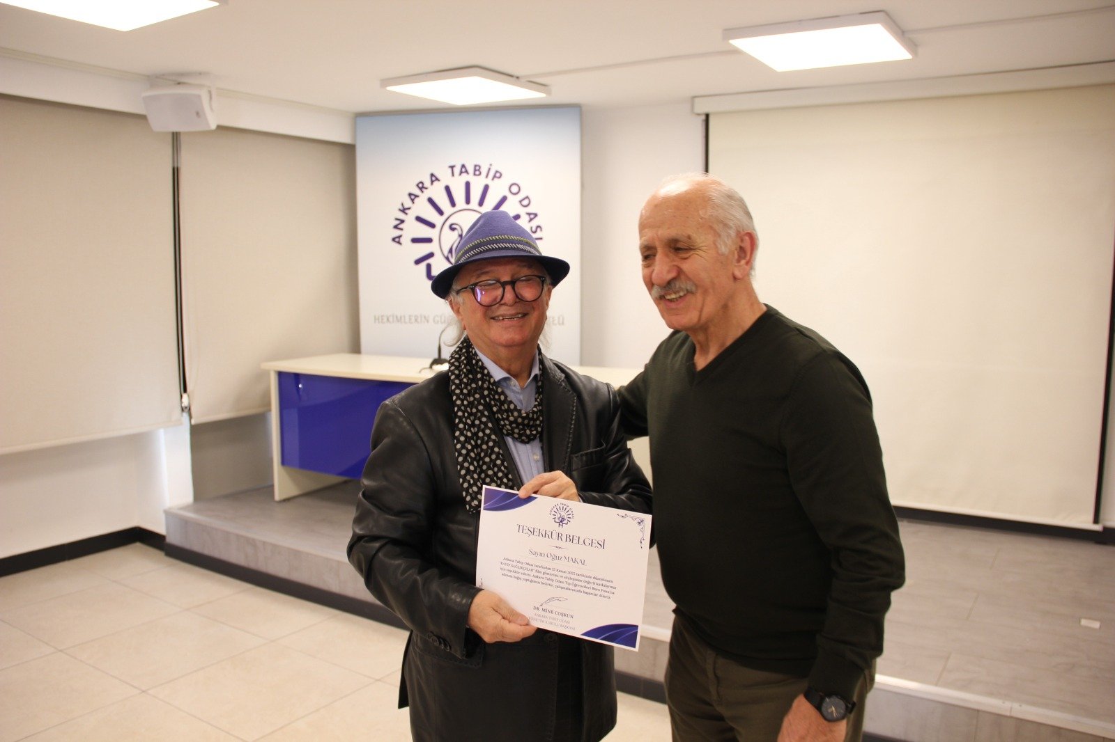 Prof. Dr. Oğuz Makal’ın yönetmenliğini yaptığı "Kayıp Sağlıkçılar" belgesel film gösterimi ve söyleşisi 15 Kasım 2025 tarihinde ATO’da düzenlendi. 1940 yılından itibaren ülkenin 21 bölgesinde kurulan Köy Enstitülerinde yalnızca öğretmenlerin değil, aynı zamanda sağlık çalışanlarının da yetiştirildiğini hatırlatan Oğuz Makal, bu konuya ışık tutan “Kayıp Sağlıkçılar” belgeseli hakkında önemli bilgiler paylaştı. Makal, filmin hem Köy Enstitülerinin sağlık politikalarındaki rolünü hem de dönemin unutulmuş sağlık emekçilerinin hikâyesini gün yüzüne çıkardığını vurguladı. Söyleşinin sonunda Dr. Alper Akçam tarafından Oğuz Makal'a adına ATO Burs Fonuna destek yapıldığını belirten teşekkür sertifikası takdim edildi.